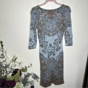 PERUVIAN CONNECTION Pima Cotton Sweater Dress Ornate Sky Blue Cocoa Brown {M14}