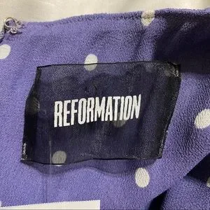 Reformation Tamara Violet Mini Dress With White Polka Dots, NWT, Size 8, Color-Violet purple/ white.