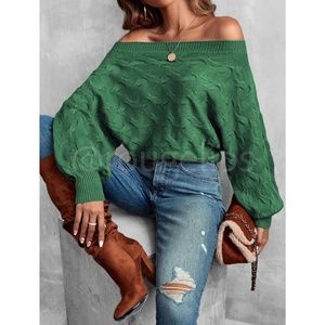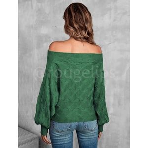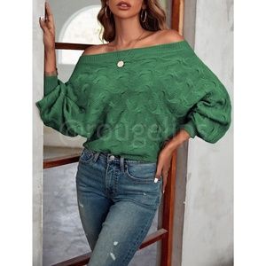 Off the Shoulder Batwing Sleeve Forrest Green Knit Sweater Pullover