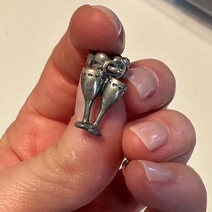 NIB RETIRED Pandora Champagne Glasses 🥂 Charm! It has never been used/worn. It is tarnished and needs a cleaning at Pandora. Smoke free home. Ships fast!