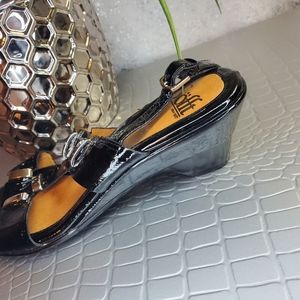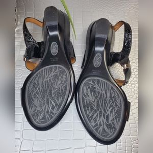 Sofft Black Patent Wedge Heel Sandals Leather size 7