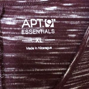 APT 9 Essentials tunic top is in a deep maroon color with thin white horizontal lines. Very good gently worn condition. No rips, tears or stains.