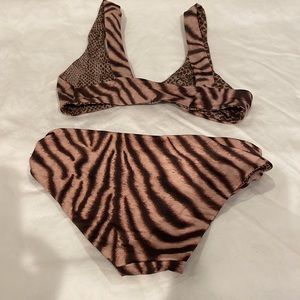 Acacia girls honey swimwear 2 piece bikini tan and brown animal print, brown snakeskin lining, barely worn, in excellent condition, no pilling, rare out of stock style and print,