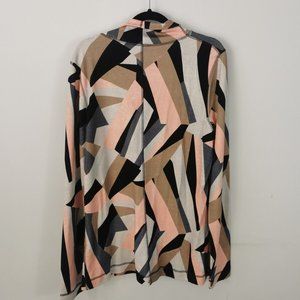 COS Geometric Print Long Sleeve Turtleneck Roll Neck Top Pink Grey Size Large