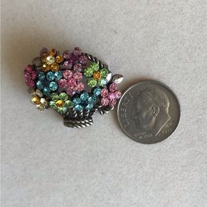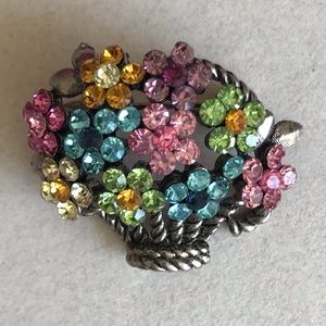 Cute & colorful basket of sparkly rhinestone flowers. Stones are pink, blue, yellow, green and violet.