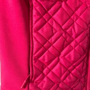The North Face Quilted Vest. Raspberry color. Zip front. 2 Front zip pockets. Embroidered logo on front and back. EUC.