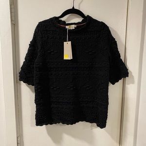 NWT Boden Claudia Textured Knitted Top Size US 4 short sleeve black sweater