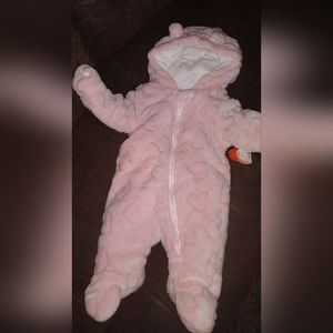NWT pink fuzzy winter onesie (0-3M) & more!!