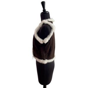 Elevate your wardrobe with this gorgeous brown suede vest featuring plush white fur trim along all edges!