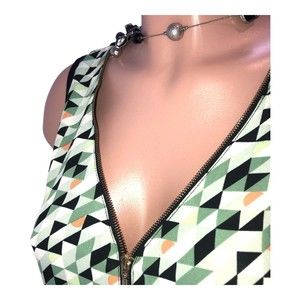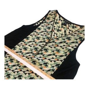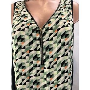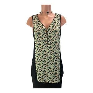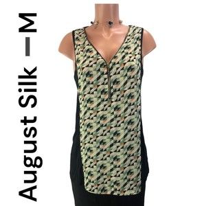 August silk black Green sleeveless tank blouse beaded neck design MED