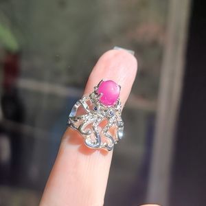 This is a NEW solid 925 Sterling silver Octopus ๐ with a 6k pink star Ruby and deep blue sapphire eyes. This is my last octopus ๐ ring I'll be making for this collection. These are all natural gemstones. Please ask questions and make an offer. I can't say yes if you don't ask!