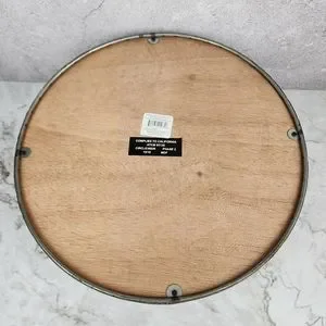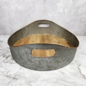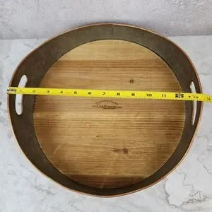 Tray Decor, Silver Metal Large Oval Serving Tray, Mango Wood Base and Brass