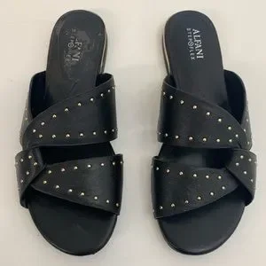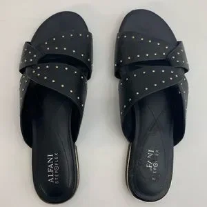 Alfani Black Leather Gold Stud Sandals 9