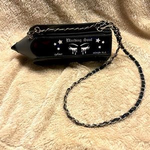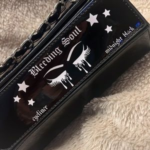 NWOT DOLLS KILL Bleeding Soul Eyeliner Crossbody Bag Magnetic closure. Faux leather. Patent leather accents. Interior is free of compartments. Writing in fonts. Eyelashes and stars are part of this fun crossbody design. Silver tone chain with faux black leather inner braid. Swivel clasps. Silver tone hardware. Excellent condition. No rips, tears or scratches. Should you have any questions, please do not hesitate to ask. Thank you for visiting my closet. 💐