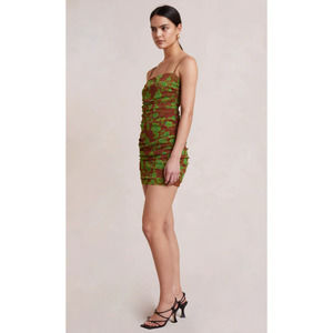 NWT Bec + Bridge Floral Blossom Mini Dress Women's Size US4 Ruched Rouleau Strap