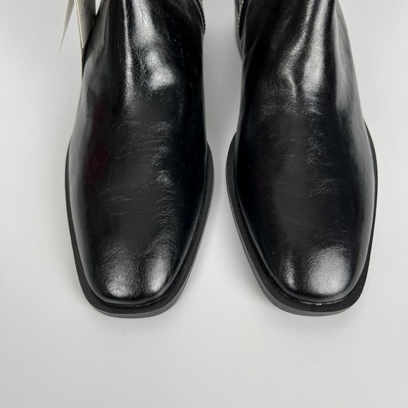 New Zara Short Heel Ankle Boots Pearl Beads Chains Leather Booties Combat Riding