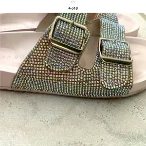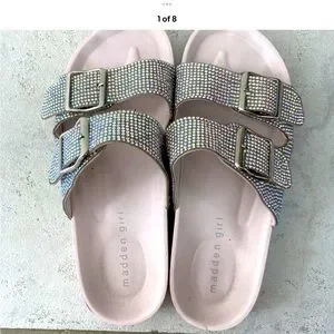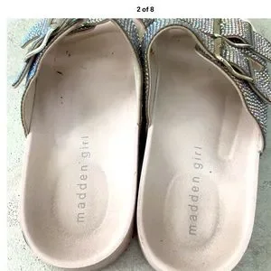 MADDEN GIRL Women's Blush Rhinestone Embellished Teddy Slip Ons Slide Sandals 6