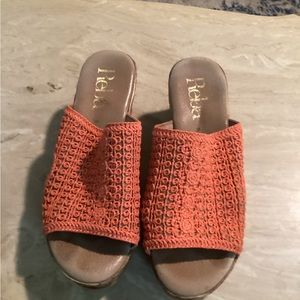 Reba coral/orange wedges Size 9. Beautiful color for spring, summer or fall. Great condition. Can no longer wear due to a foot injury