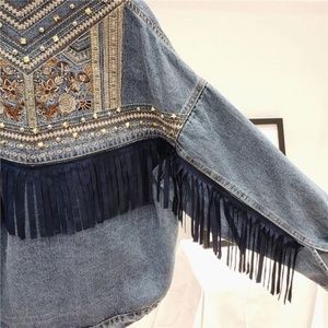 SOLD OUT Oversized Denim Stud Fringe Embroidered Jacket
