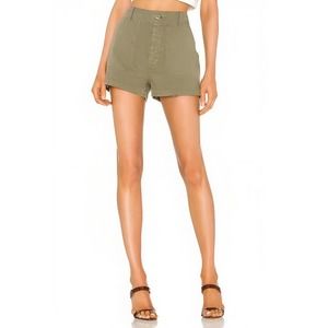 RE/DONE 50S Military Shorts in Olive Green Size 25 Button Fly Flat Front Cotton