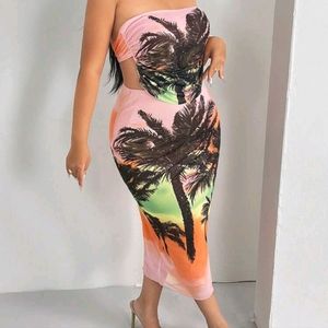 SHEIN 2XL Tropical Print Tube Top and Skirt