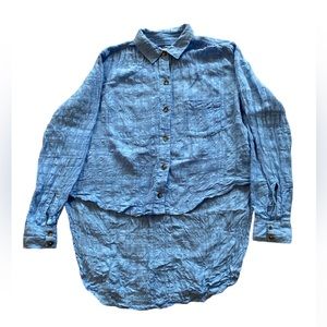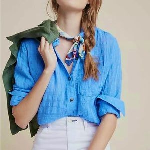 Anthropologie Pilcro and the Letterpress Blue Linen Button Down Top. Size 0.