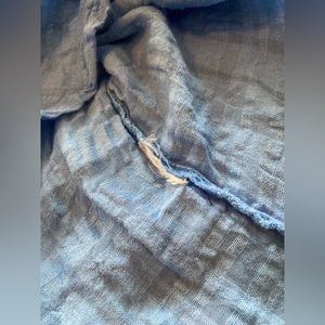 The fabric tag has been cut out, but I checked other shirts here on Poshmark and the fabric is listed as a Linen/Cotton blend.