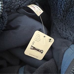 Slouchy and oversized with a flowy silhouette Warm, cozy fleece with water-resistant nylon piecing Funnel neckline; jersey lining; two-way zipper closure