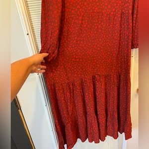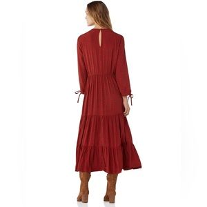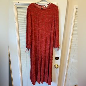 NWT Free Assembly Red Tiered Maxi Dress Size Large; Boho Spotted Maxi Dress