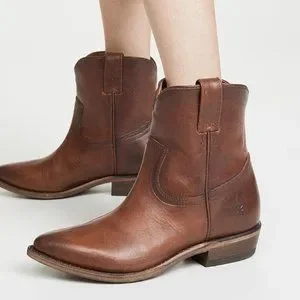 $369 Frye Billy Short Pull On Brown Leather Southern Cowgirl Cowboy Ankle Bootie