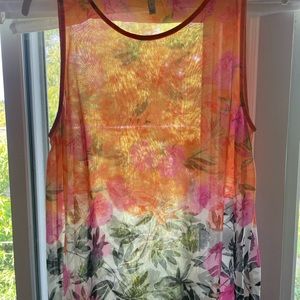 Joie Women’s small sheer silk floral tank orange, black, green, pink, white EUC