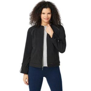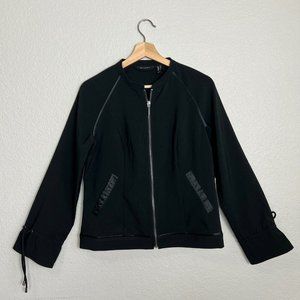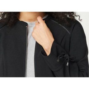 H by Halston Zip Front Bomber Jacket Size 4 Drawstring Sleeves Black A350234