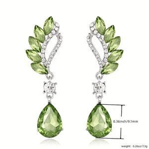 Elegant Green Waterdrop Wings Shaped Drop Earrings Silver Plated Retro Dangle Earrings Brand New