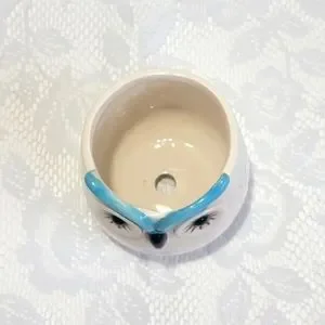 This mini ceramic pot features a premium glazed cute blue owl face design, perfect for holding your favorite succulent plant. Made with high-quality ceramic material, this planter is durable and built to last. The white and blue color of Owl pattern add a charming touch to any room, making it suitable for all occasions.