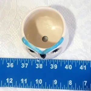 Mini Ceramic Pot Premium Glazed Cute Blue Owl Face Succulent Plant Holder