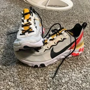 Nike React Element 55- White black yellow and neon orange/red running shoe