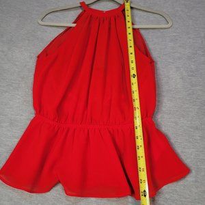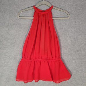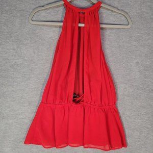 Express Womens Top Small Red Sleeveless Sheer Halter Open Back