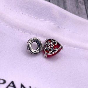 Pandora Disney Mickey & Minnie Mouse Kiss Red Murano Glass Dangle Charm