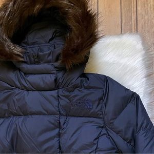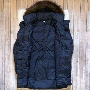New With Tags- The North Face Women’s New Dealio Down Parka In Aviator Navy With Attached Hood With Removable Faux-Fur Ruff, Double Breasted Front Zip Closure With Internal Draft Flap, Zippered Hand Pockets, Feminine Silhouette With Subtly Elasticized Waist At Back, Internally Elasticized Sleeve Cuffs And 550 Fill Goose Down Insulation.