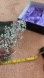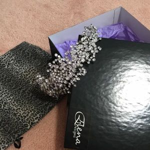 Rhinestones beautiful head piece worn one week by my daughter for her wedding very flexible just the measurements . No stones are missing comes with a dust bag and a box . From smoke pet free home .