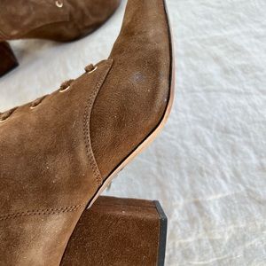 Size 9 suede boots in color dark pecan. Gently used condition. Some minor wear/scuffing