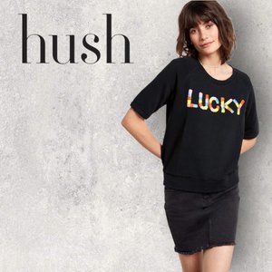 Hush Black Lucky Slogan Embroidered Cotton Short Sleeve Sweatshirt Size S UK 8