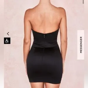 Brand new, never worn, asymmetric bodice and zipper back. Tag and house of cb security ribbon were removed only for trying dress on.