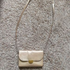 Cute Pre-owned Leather Gold Fossil Crossbody Purse