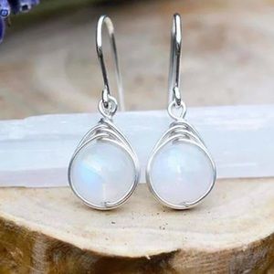 New 925 Silver Wire Wrapped Moonstone Earrings