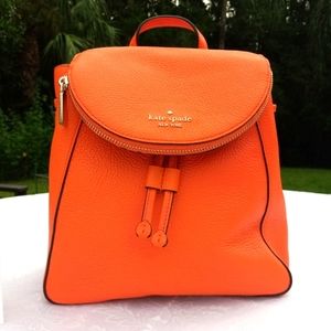 Kate Spade New York Leila Medium Leather Backpack - Adjustable Straps - Coral Buds (Orange)