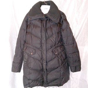 Cole Haan Black Women's Down Coat Jacket with Knit Collar size Large