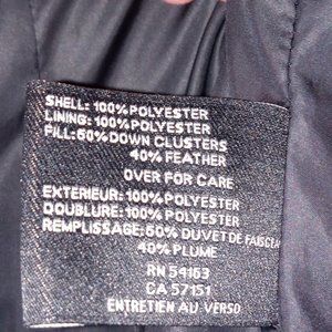 • Shell: 100% polyester, Lining: 100% polyester, Fill: 60% Down Clusters, 40% Feather