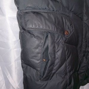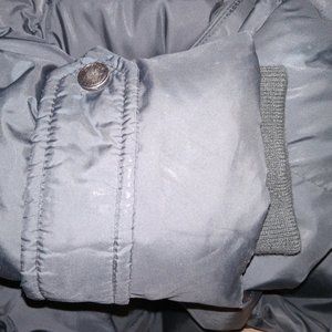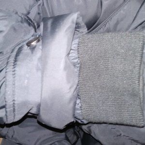 This Cole Haan Black Women's Down Coat Jacket with Knit Collar is a size large. Mid-length style, zipper + snap closure, knitted high neck for better warmth. Sleeves snap closed on outside and feature sweatshirt material style cuffs to keep your arms extra warm. Excellent preowned condition.