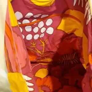 Huge cotton tote bag by Marimekko for target 2016 collaboration. albatross pattern, full floral lining. interior divinder pockets, zippered pocket and magnetic top clasp. in excellent condition, a few light marks in the yellow field and bottom, pictured.
